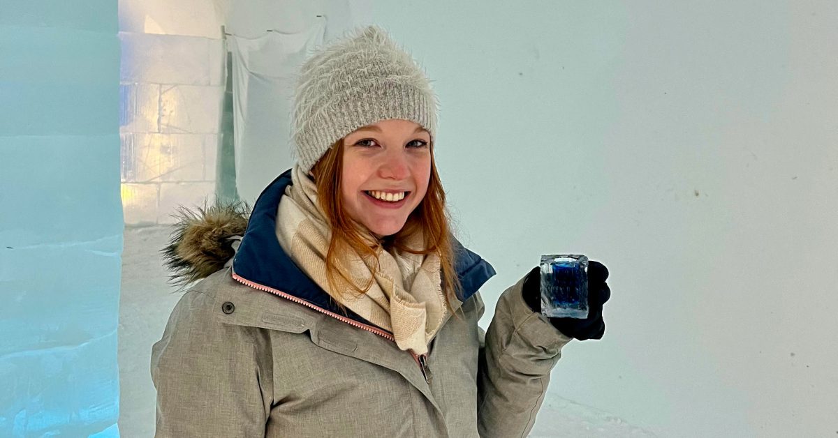 The Igloo Hotel boasts a range of modern amenities (for a snow hotel), including a chapel and a bar. Here, you can sip a puckering blue cocktail (vodka and Curaçao) served in an ice cube glass. There’s also a non-alcoholic version available. You can book an overnight stay at the Igloo Hotel or visit for the day, as I did. A warm and welcoming visitors’ centre is just a few steps away, offering a restaurant and facilities for those braving an overnight stay.