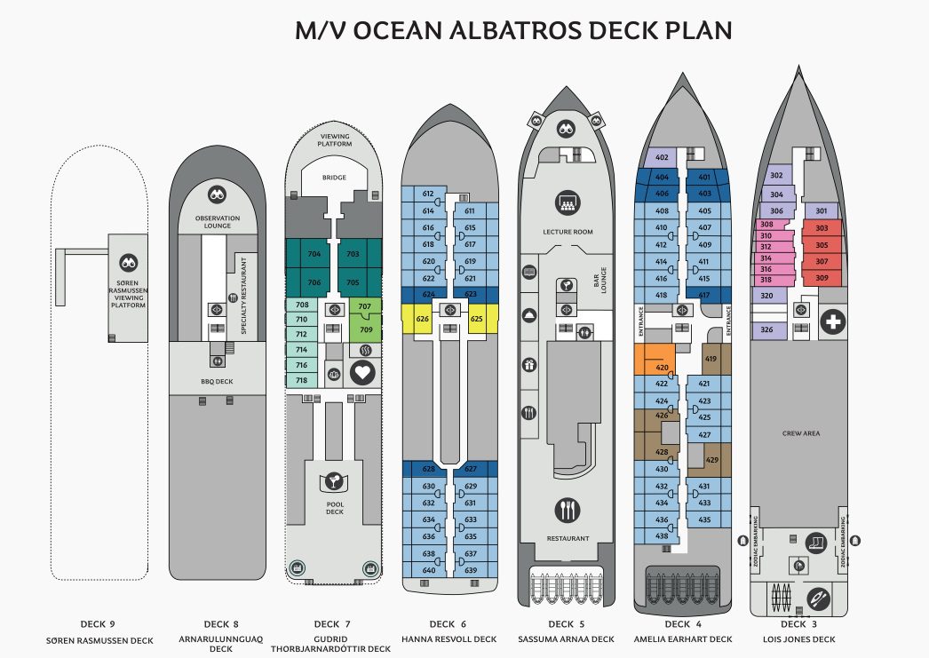 Ocean Albatros is built to keep you close to the outdoors, you are never far from outdoor space. One standout feature is the hydraulic observation platform. These are ideal for watching the ship slice through ice or spotting a solar bear in Svalbard.
