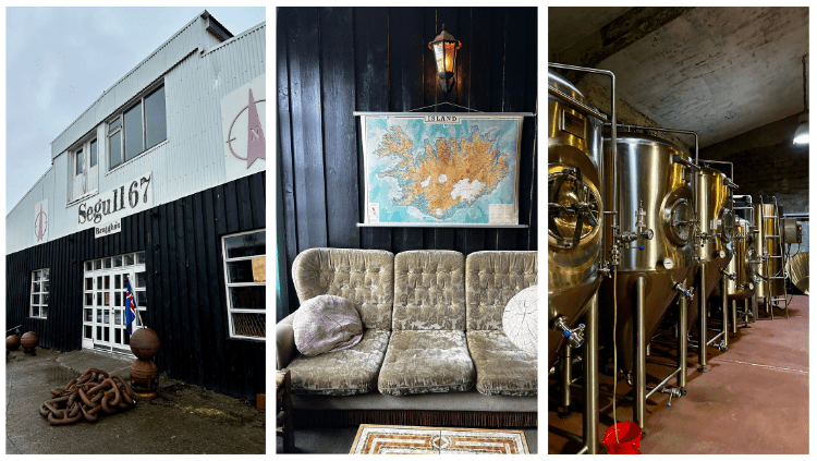 Segull 67 is housed in a converted fish‑processing plant just steps from the harbour. It opened in 2015 and is run by three generations of the Haraldsson family: the current owner Marteinn, along with his father and grandmother. The brewery’s name carries meaning: Segull means magnet in Icelandic, inspired by a compass needle always pointing north (a strange coincidence) and 67 is a family lucky number that appeared on a great‑grandfather’s truck (F67) and a grandfather’s boat (SI67).