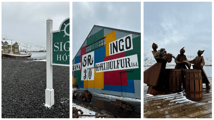 We flew from London Gatwick to Akureyri, taking advantage of the direct routes that now also run from Manchester, between November and March. Touching down in northern Iceland felt a world away from the long security lines and busy departure hall of Gatwick. Akureyri International Airport is small, with one runway and one combined area for both arrivals and departures. We couldn’t ask for a calmer start (and end) to our Iceland Adventure. Outside the airport, we met Siggi, our private guide for the trip. After loading up the van, we left Akureyri behind and headed for Siglufjörður.