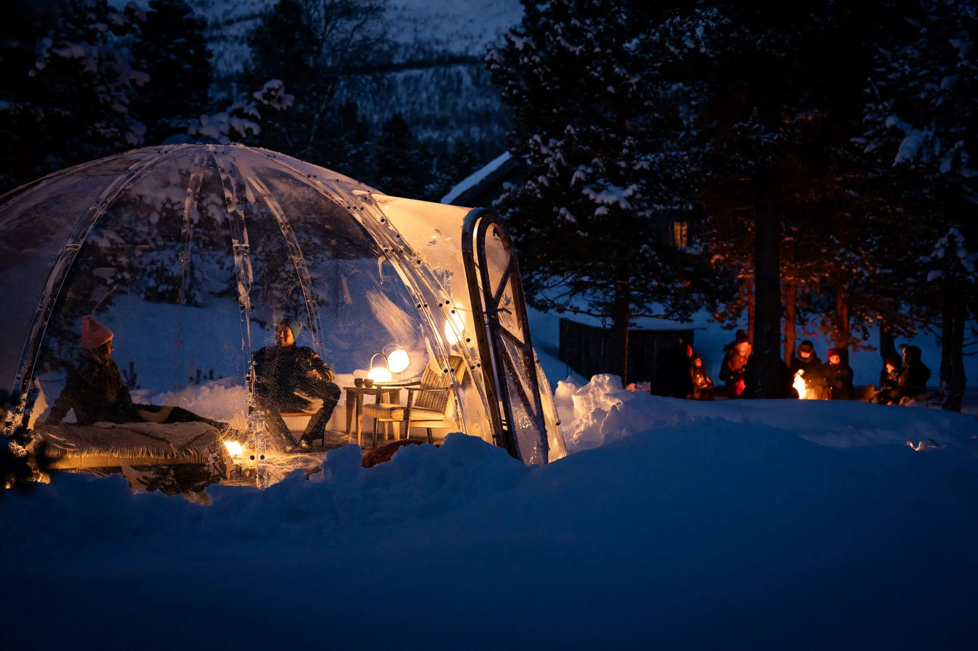 A visit to this remote outpost in winter guarantees adventure. The journey begins with an exhilarating jeep ‘safari’ required to reach the lodge. After an epic 2–4 hour drive (depending on snow conditions), guests quickly bond over the shared experience, setting the tone for a sociable two-night stay. Group activities, such as hiking and snowmobiling, encourage interaction, while the on-site hot pool provides a space to relax and connect with fellow travellers.