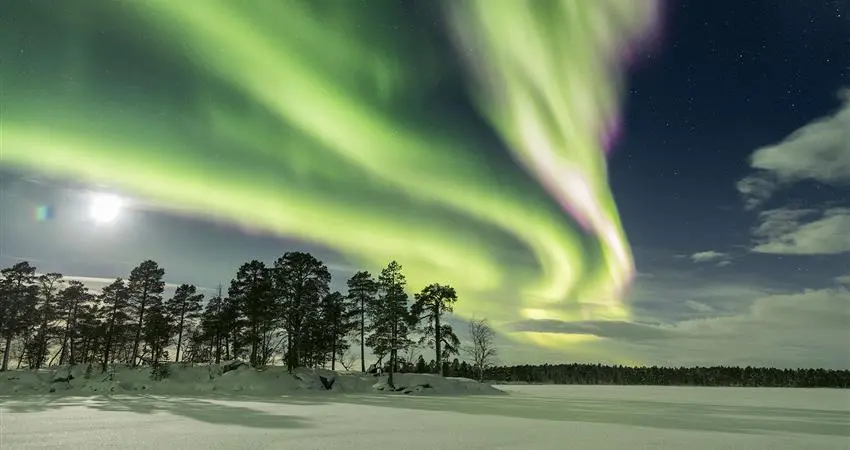Find yourself in the heart of Finnish Lapland in the Sami village of Inari for the start of your winter adventure. Away from light pollution, Wilderness Hotel Juutua is in a perfect position to search the Northern Lights by night and enjoy winter adventures by day next to the frozen Lake Inari. Cosy lodging and hearty Lappish cuisine provide all the comfort you need for a relaxing break.