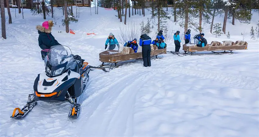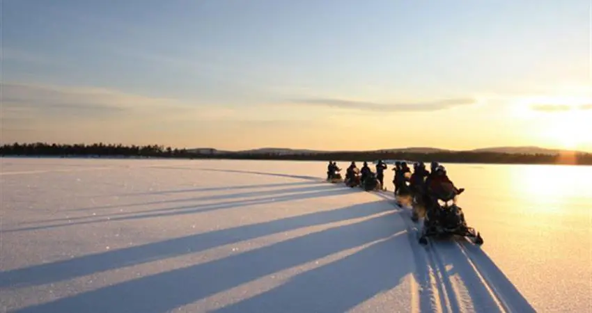 Ice fishing is at the heart of our local culture, and today you will get to share this experience. Start the day with a sleigh ride behind the snowmobile as you head out to find the best ice fishing spot. On the way your guide will share interesting facts about life up here in the North, before they decide on the best place to set up camp. You’ll then learn how to drill a hole in the ice, before trying your luck at making a catch. During the day you’ll enjoy warm drinks and have lunch by the fire - hopefully the fresh fish you caught!
