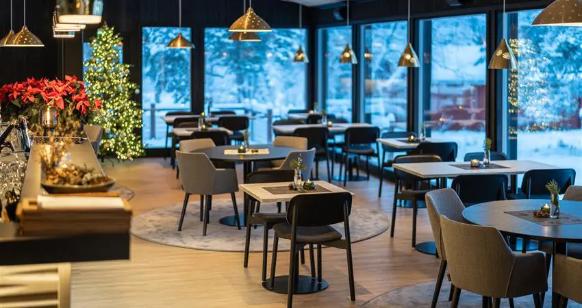 Enjoy full board meals in the hotel's Restaurant Aanaar. The restaurant's philosophy is to "eat from the forest - drink from the nature". The menu tells the story of the northern wilderness through award-winning cuisine with an astounding view to the rapids of River Juutua. Ingredients that feature on the menu include lichen and the traditional Sami herbal plant Angelica, to reindeer and Lake Inari’s fish. Diets can be accommodated with advance warning. There's also a well-stocked bar serving a variety of wines, craft beers, soft drinks and Arctic-inspired cocktails. Your stay includes three course dinners daily, and one special Arctic culinary five course dinner.