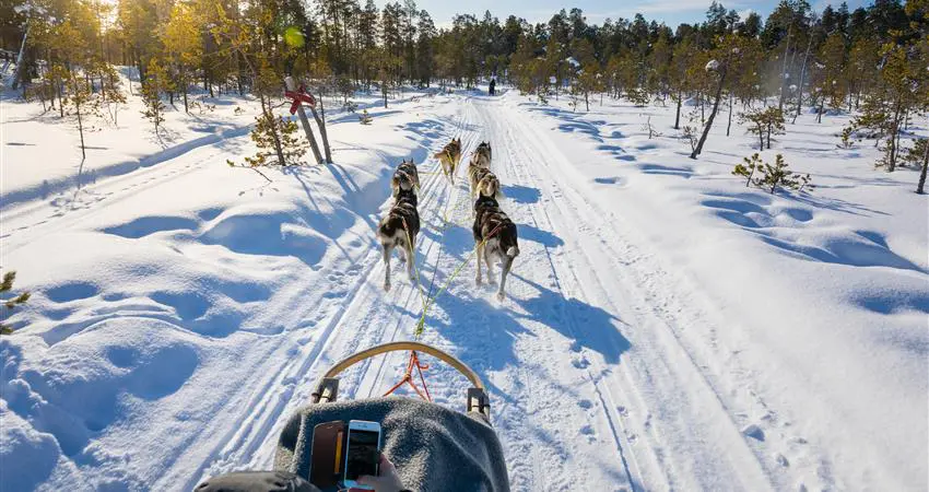 This is the ‘must do’ experience and the favourite activity of guests at Muotka. When you arrive, the husky's excitement is contagious as you tether them to your sled. Once set up, they’ll pull you through the beautiful winter scenery, and you’ll realise this is the best way to see Lapland. As the dogs fall silent, you are left with the soft padding of paws and the swoosh of the sleigh for company. All safaris run so that one guest is mushing while the other rides on the sleigh, with these positions being swapped halfway. Children ride behind in a cosy sled. (Driving time approximately one hour)
