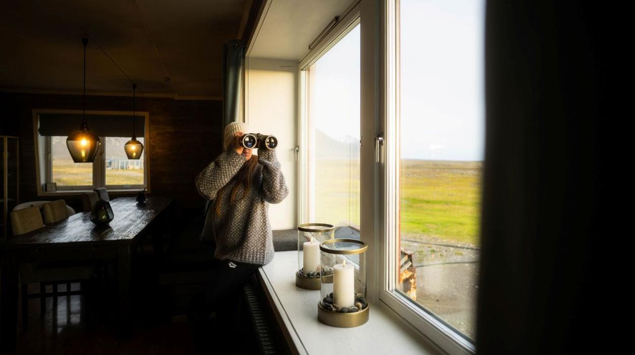 On arrival at Isfjord Radio, you’ll feel the sense of isolation and history at this remarkable outpost, located 90 km from the nearest town in a secluded spot at Cape Linne. Once a vital communications hub, the station has been reimagined as a high-comfort wilderness lodge. A guided walk introduces you to its stories of human endurance on the Arctic frontier. Later, warm up in the sauna with views across the Arctic Ocean before enjoying a chef-prepared three-course dinner featuring seasonal Arctic flavours.