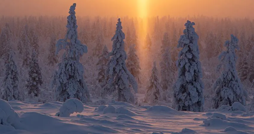 This evening take your seat in a comfortable sleigh, pulled by a snowmobile, and head off into the night in search of the mesmerising Northern Lights. Your destination is an Aurora camp on Lake Inari, well away from any artificial light pollution, with a blazing open fire, plenty of hot drinks and the perfect viewing spot to enjoy the multitude of colours as they flame across the sky.