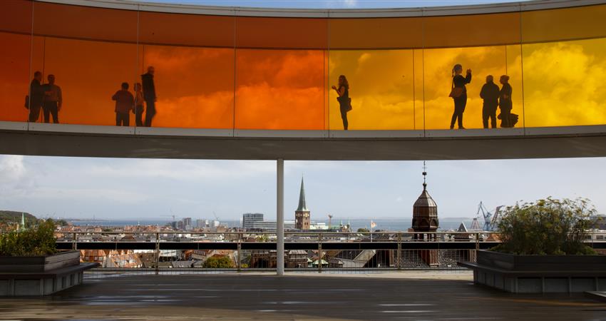 Start your day with a visit to ARoS Aarhus Art Museum, one of Denmark’s most prominent galleries. The highlight is Your Rainbow Panorama, a circular glass walkway with panoramic views over the city, seen through every colour of the spectrum.