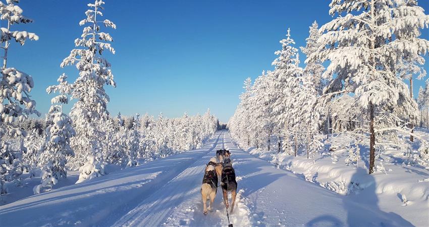 Today, your first adventure awaits - taking you to a nearby husky farm, where you’ll join an exciting husky safari. Enjoy getting to know each of the dogs on your team, as they eagerly await their run out on the trails. After an introduction and information on how to drive the dog-sled, you’ll drive in pairs, one mushing the team and one as a passenger, swapping on route as you glide through the forests on this unforgettable journey. After the safari, you’ll share a snack and hot drinks at the farm before heading back to your villa.