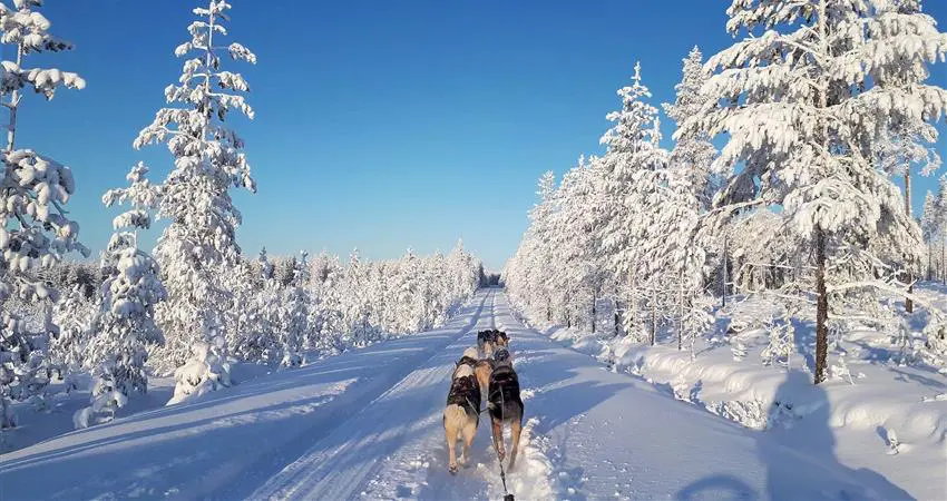 Today, your first adventure awaits - taking you to a nearby husky farm, where you’ll join an exciting husky safari. Enjoy getting to know each of the dogs on your team, as they eagerly await their run out on the trails. After an introduction and information on how to drive the dog-sled, you’ll drive in pairs, one mushing the team and one as a passenger, swapping on route as you glide through the forests on this unforgettable journey. After the safari, you’ll share a snack and hot drinks at the farm before heading back to your villa.