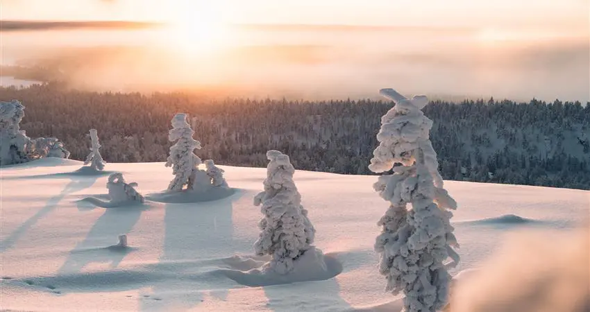 Experience untouched Arctic landscapes with snow-covered trees, frozen lakes and peaceful fells
