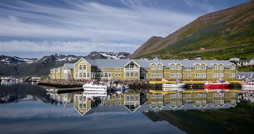 In the afternoon, embark on a drive to Siglufjörður, which takes you off Route 1 and offers impressive views of northern Iceland. Once you arrive in Siglufjörður, check into the Siglo Hotel, a location featured in the Nordic Noir series Trapped. Spend the evening relaxing at the hotel or enjoying a meal at a local restaurant, preparing for your journey back south the following day.