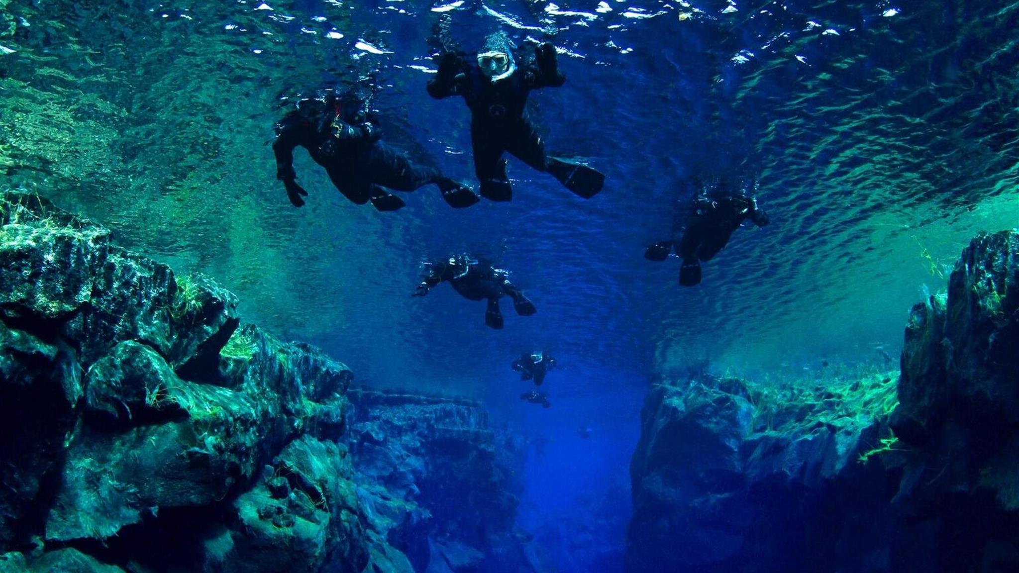 Snorkel between the North American and Eurasian tectonic plates in the crystal-clear Silfra Fissure.