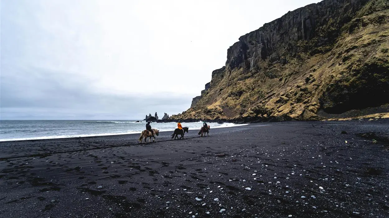 This one-hour horse riding tour takes you along the striking black sands near the village of Vík, offering a peaceful and scenic experience suitable for both beginners and confident riders. Starting just a few minutes from the coast, you'll ride a sure-footed Icelandic horse along the shoreline with views of sea cliffs, distant rock formations, and, in summer, the chance to spot puffins overhead.