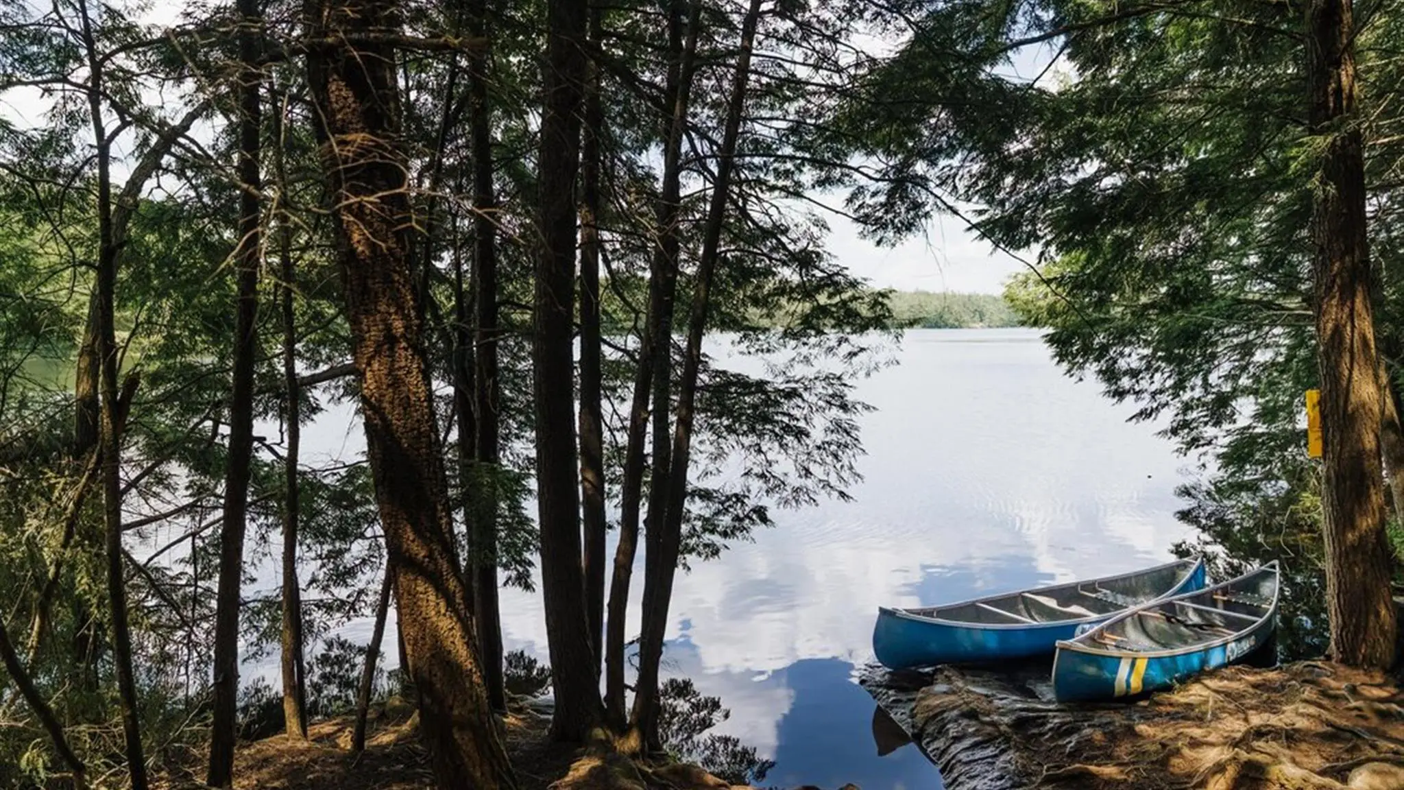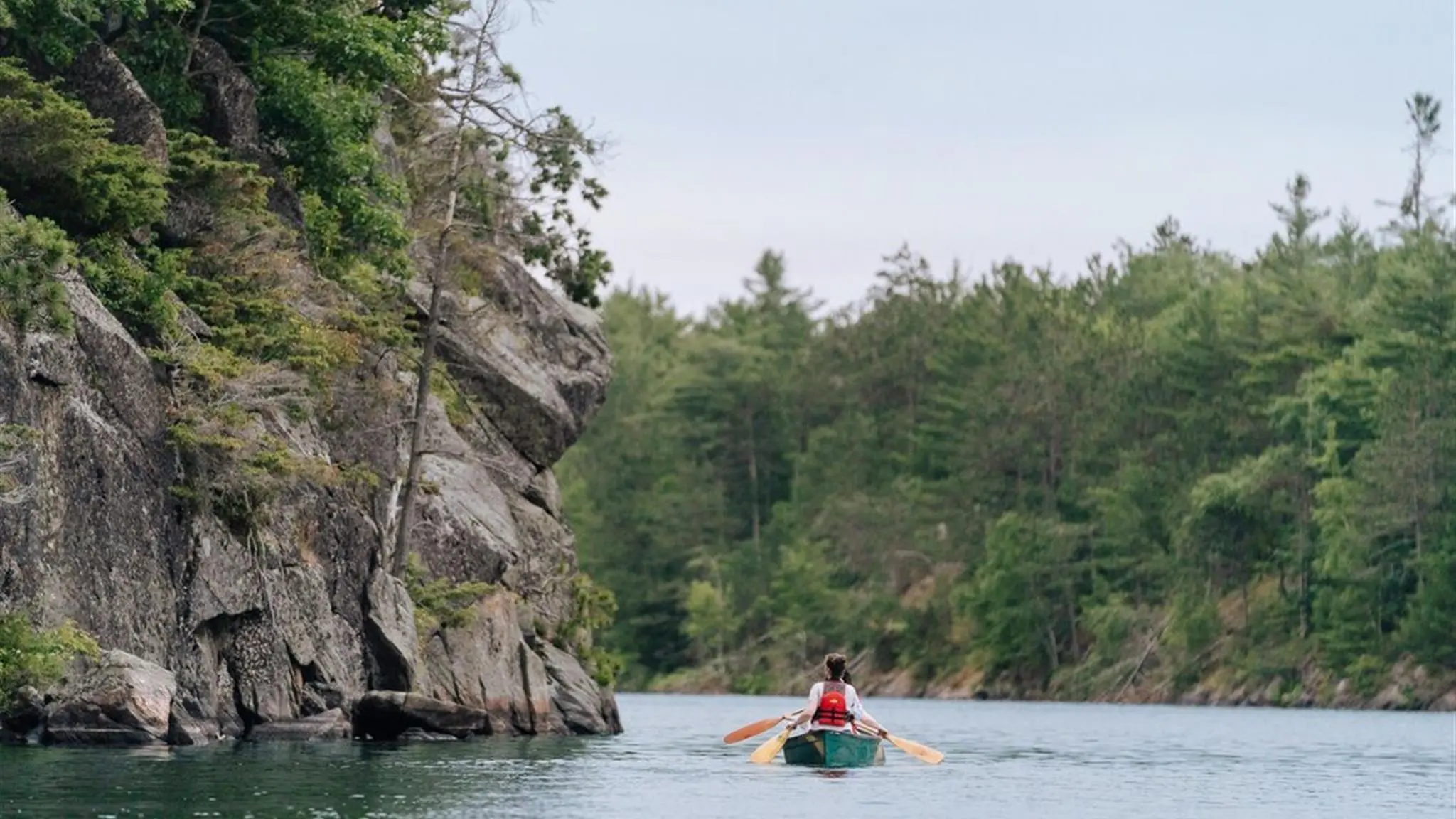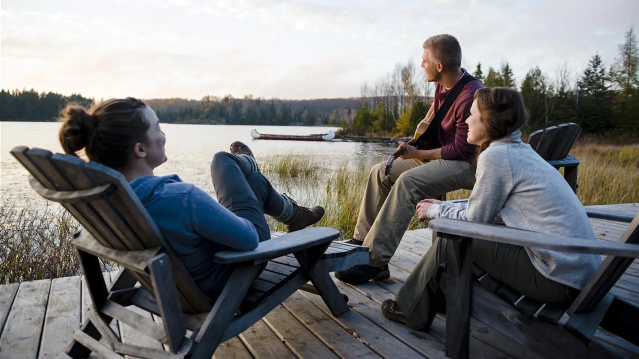 Tucked away on a quiet lake on the edge of Algonquin Park, the log cabin delivers an immersive wilderness-escape with built-in comfort. Surrounded by undeveloped crown land, the cabin offers a rustic-chic setting where guests stay in a handcrafted log structure featuring a large stone fireplace, shared ensuite washrooms, wood-fired sauna and sun-deck for ultimate relaxation. Accommodations include double-bed bedrooms (typically two single beds each), communal dining around a harvest-table, and a screened porch for quiet moments. Though off-grid, the property provides indoor flushing toilets and solar-powered showers in the sauna house. Fully-guided canoe and hiking excursions exploring Algonquin’s lakes and forest look-outs are included in your stay, as well as gourmet meals prepared on-site. There’s also plenty of time to relax and unwind by the lake, sauna or fire.