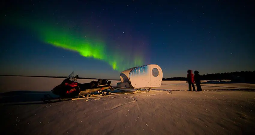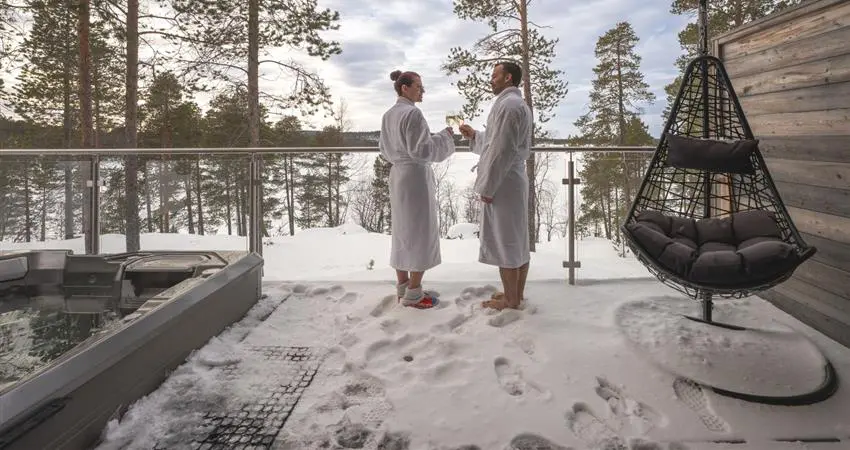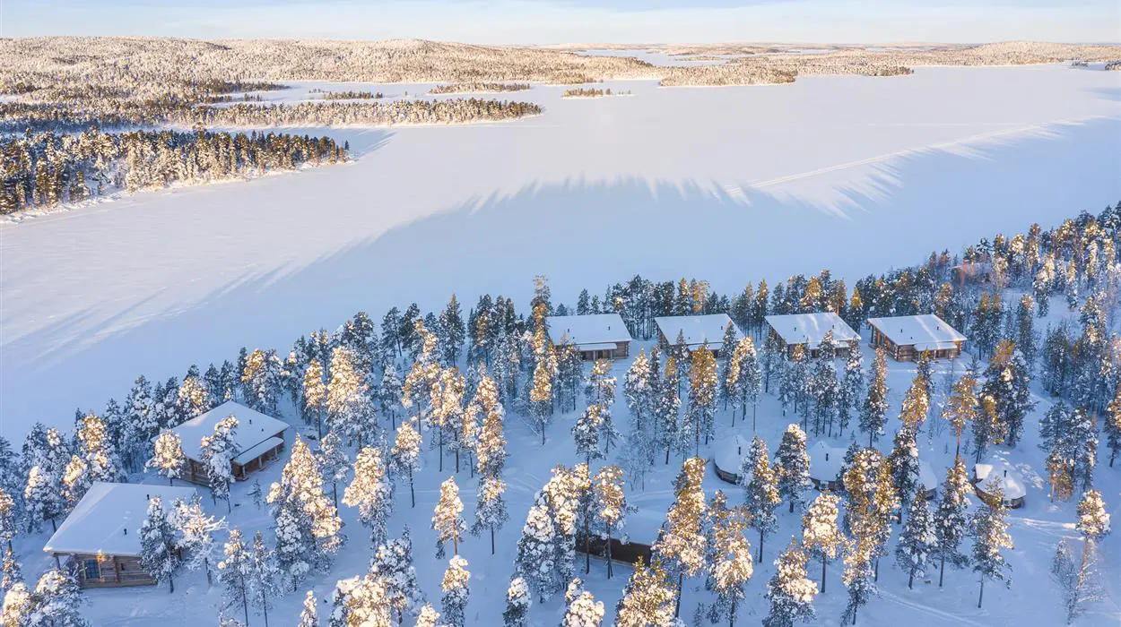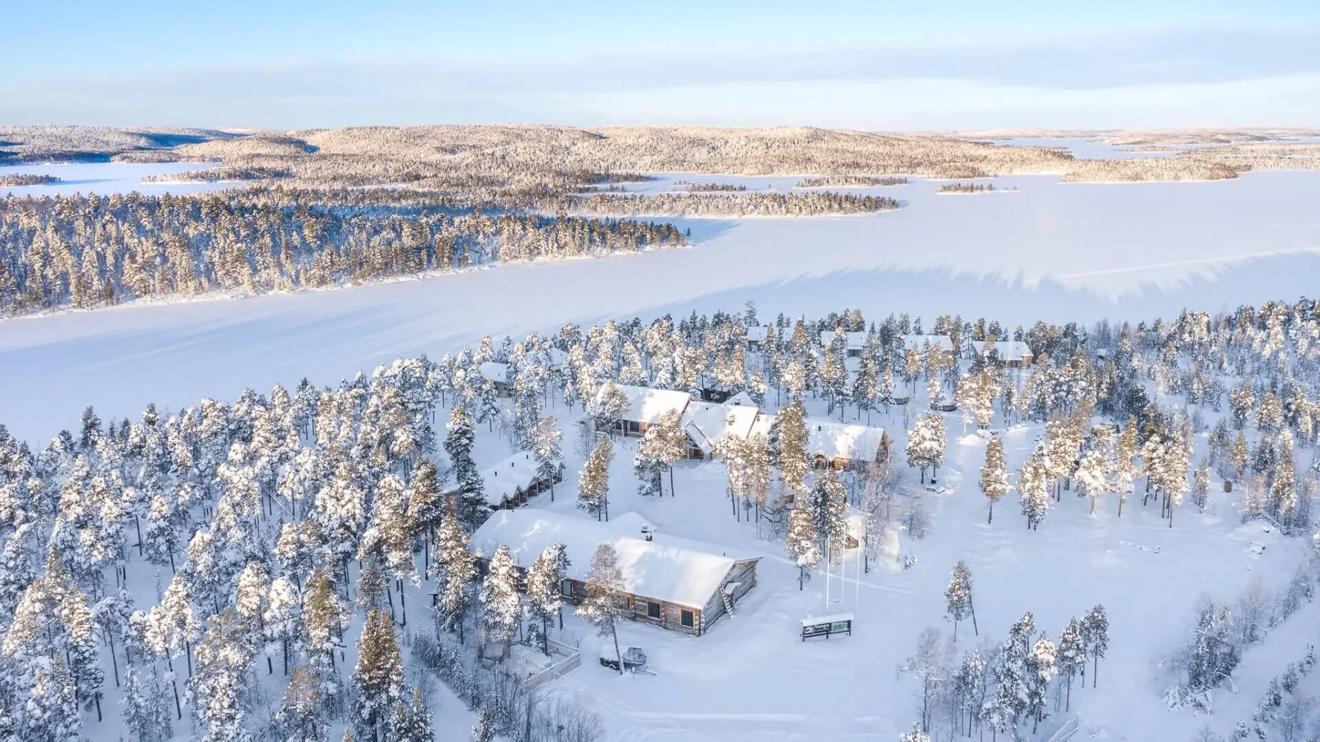 Stay on the southern shore of Lake Inari with open views of Finland’s snowy wilderness