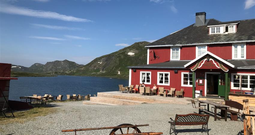 This atmospheric mountain hotel has been welcoming guests for many years. Rooms are comfortable with a private bathroom and the hotel's restaurant serves breakfast and dinner. Lunch packs can be made from the breakfast table, which is very typical with hotels catering for hikers in Norway.