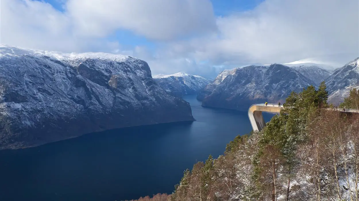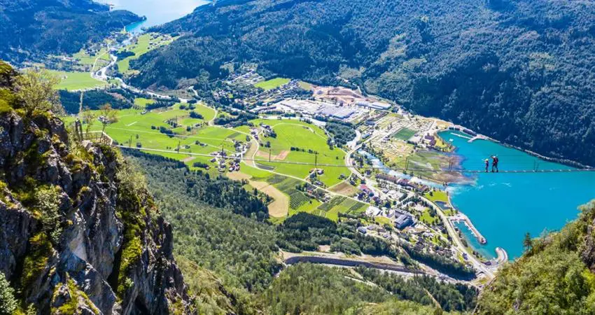 From here drive to Laerdal and take the Laerdal tunnel, the longest road tunnel in the world at 24.5 km long, taking you to Aurland. After the tunnel you may wish to branch off to the Stegastein viewpoint, located near the top of Aurlandsfjellet. The road is narrow and steep with hairpins, so you need to be a confident driver, but it is definitely worth it. The panoramic views are incredible!