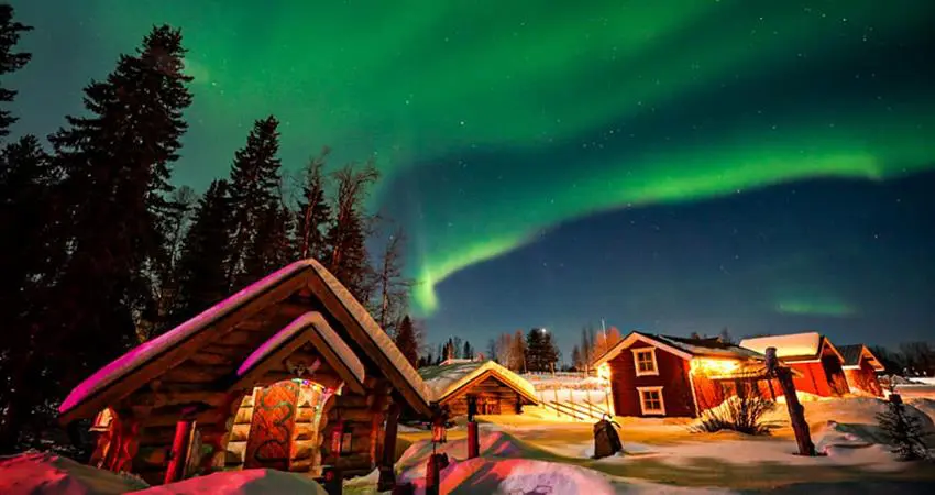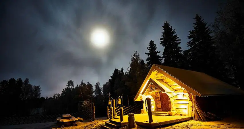 Watch for the northern lights from the river-side sauna or outdoor jacuzzi