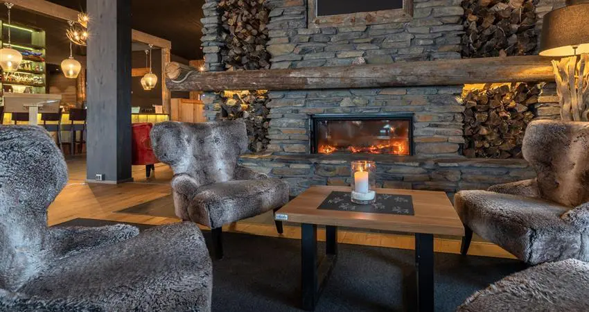 Buffet style meals are served in the cosy Lappish restaurant with panoramic windows over the surrounding landscapes. Each lunch and dinner sitting features a choice of two main courses, dessert and an abundant salad and soup table. Expect Lappish ingredients to feature with plenty of fish, meat and vegetarian options. Diets can be accommodated with advance warning. There's also a well-stocked bar serving a variety of wines, craft beers, soft drinks and Arctic-inspired cocktails.