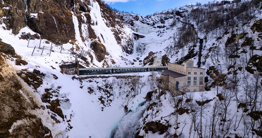 Ride the famous Flåm Railway, framed by mountain and fjord scenery
